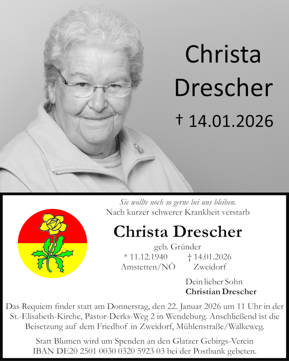 Statt Blumen wird um Spenden an den Glatzer Gebirgs-Verein gebeten.
